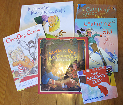 - One-Dog Canoe by Mary Casanova and A Camping Spree with Mr. Magee andLearning to Ski with Mr. Magee both by Chris Van Dusen are plain fun. And Van Dusen’s Mr. Magee illustrations are vivid and wonderful.