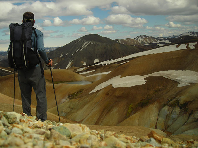 Top: Enjoying the view while hiking across Iceland in 2008.